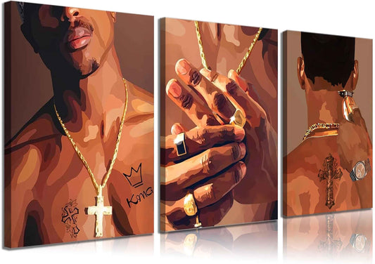 3 Pcs Black Woman Poster Wall Art African American Black Female Pictures Wall Decor Black Canvas Print African American Decor Artwork for Bedroom Living Room Bathroom Office Home Decoration